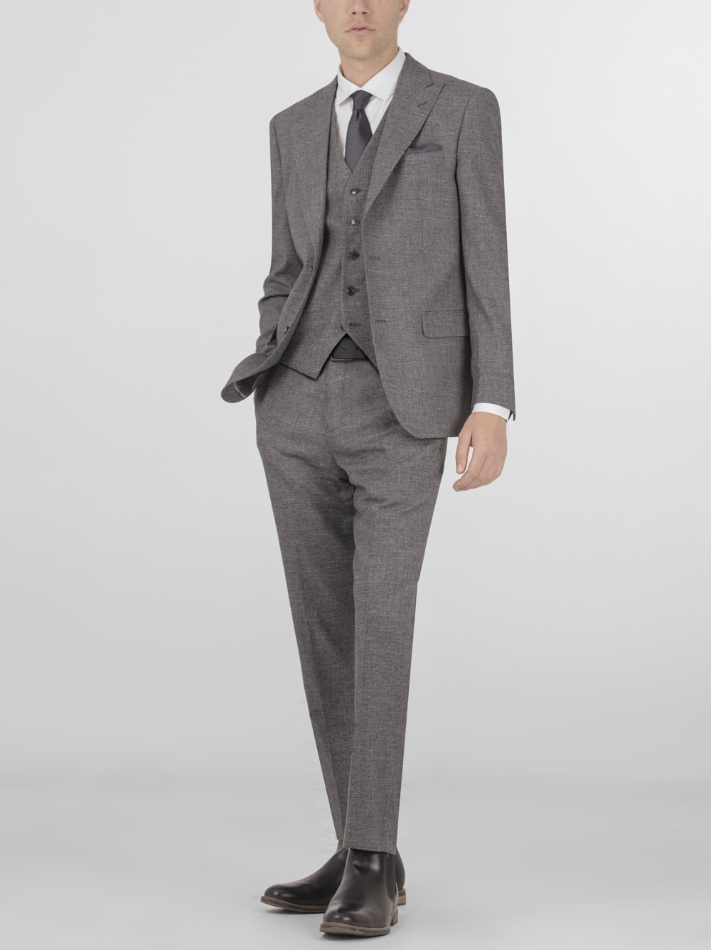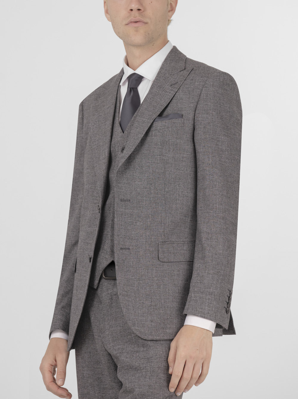 Grey Sharkskin Three Piece Peak Lapel Suit