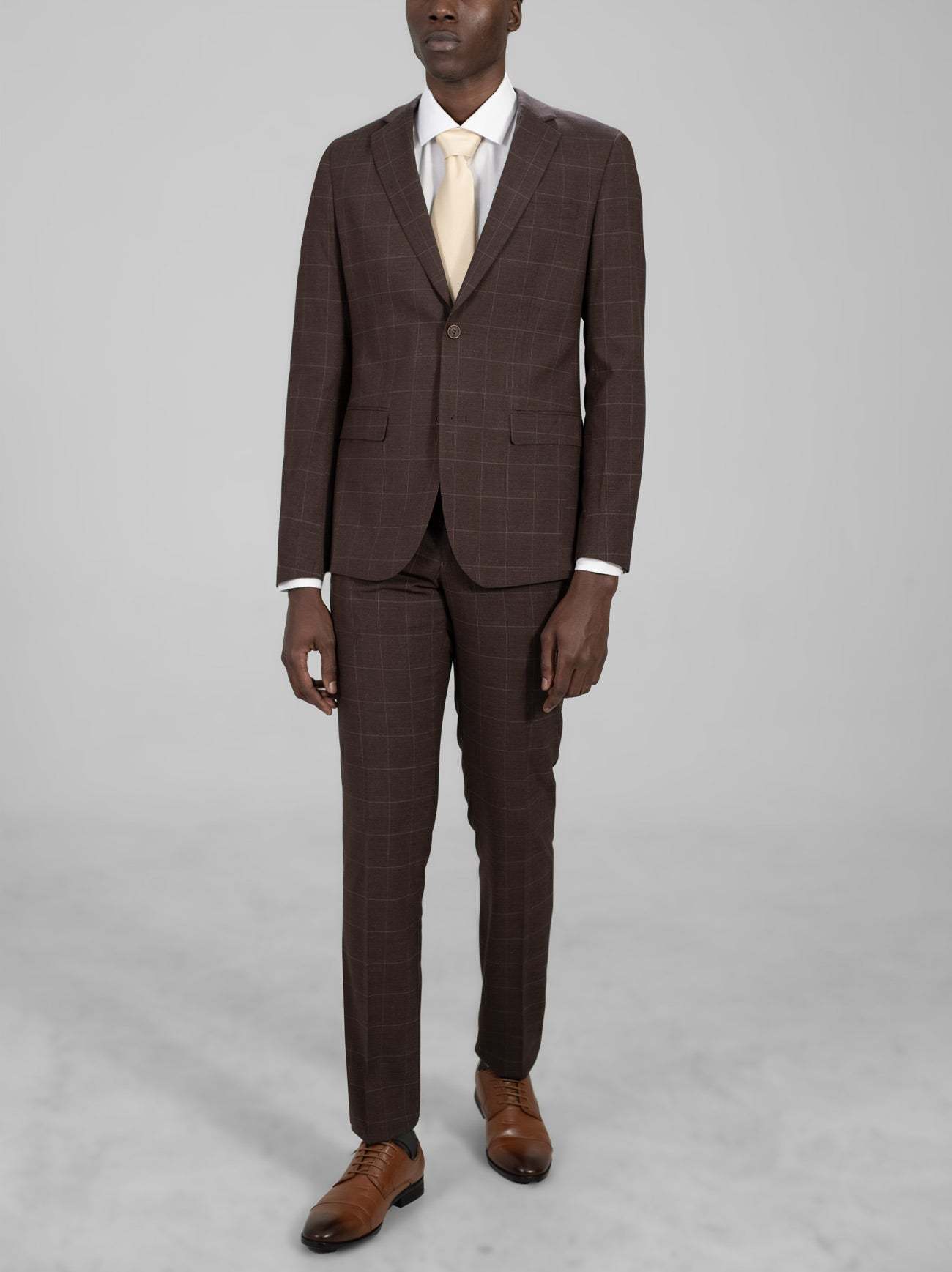 Cedar Brown Windowpane Two Button Suit