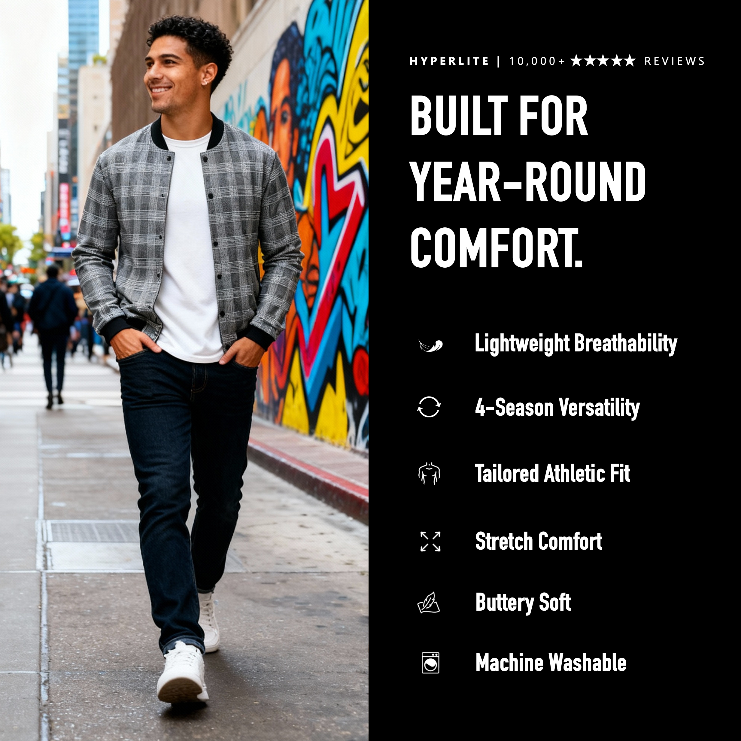 Our signature lightweight bombers feature our patented HYPERLITE fabric for maximum comfort and year-round versatility.