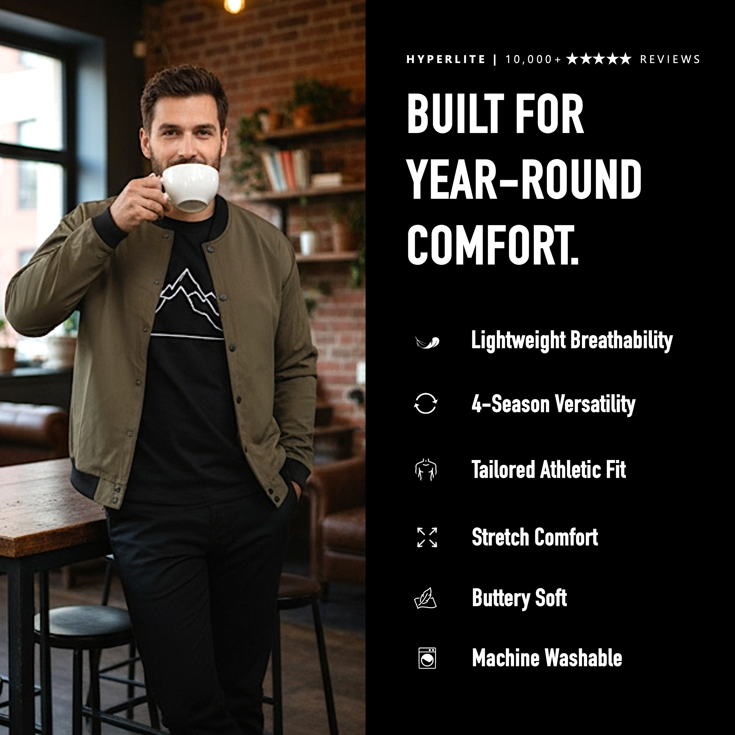 Thousands of 5-star reviews don't lie. Each Hyperlite bomber is built using the best lightweight materials on the planet. Buttery soft, high retention rib, our signature Soft-Touch matte black snaps, and a super-sueded lightweight fabric that fits great and feels even better.