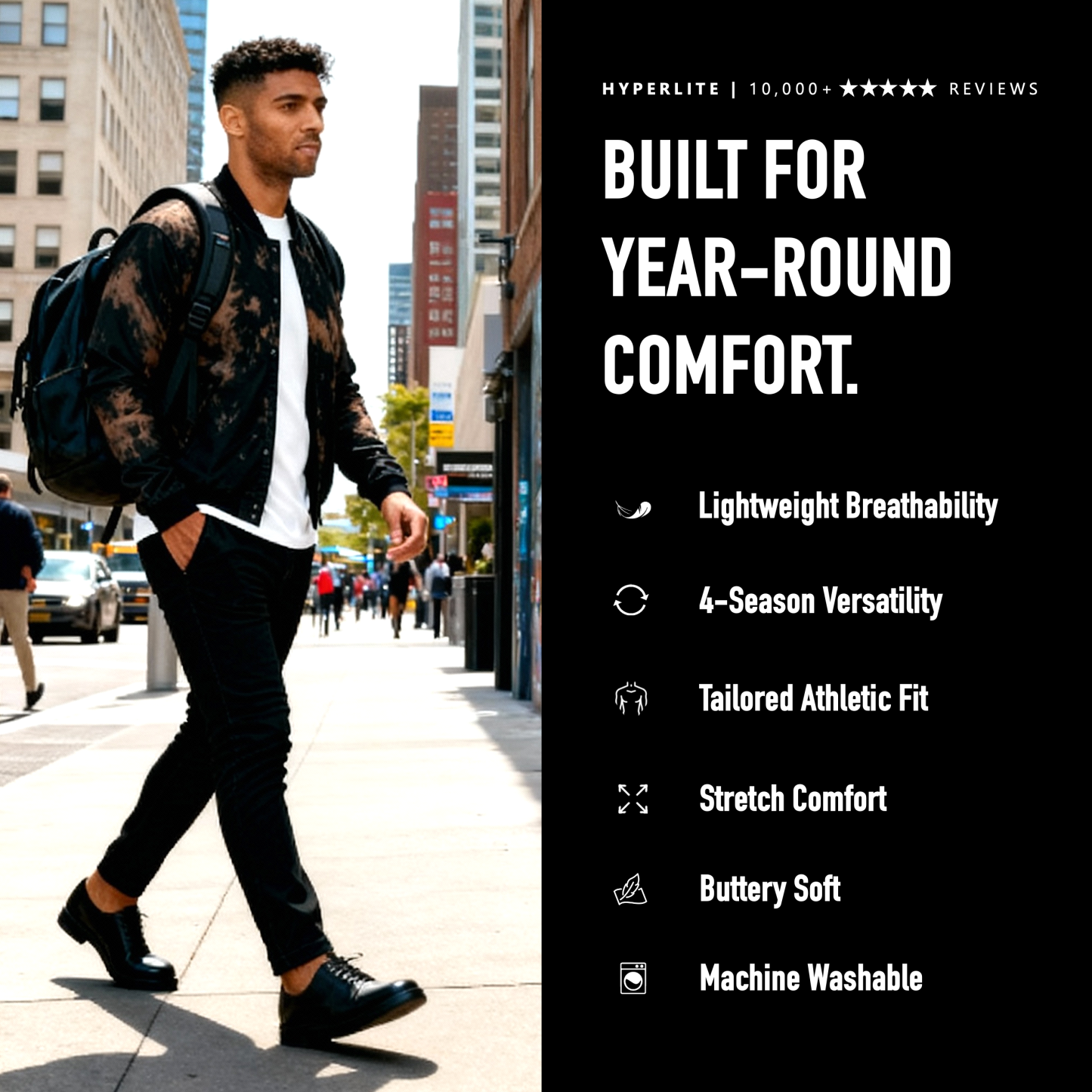 Our signature lightweight bombers feature our patented HYPERLITE fabric for maximum comfort and year-round versatility.
