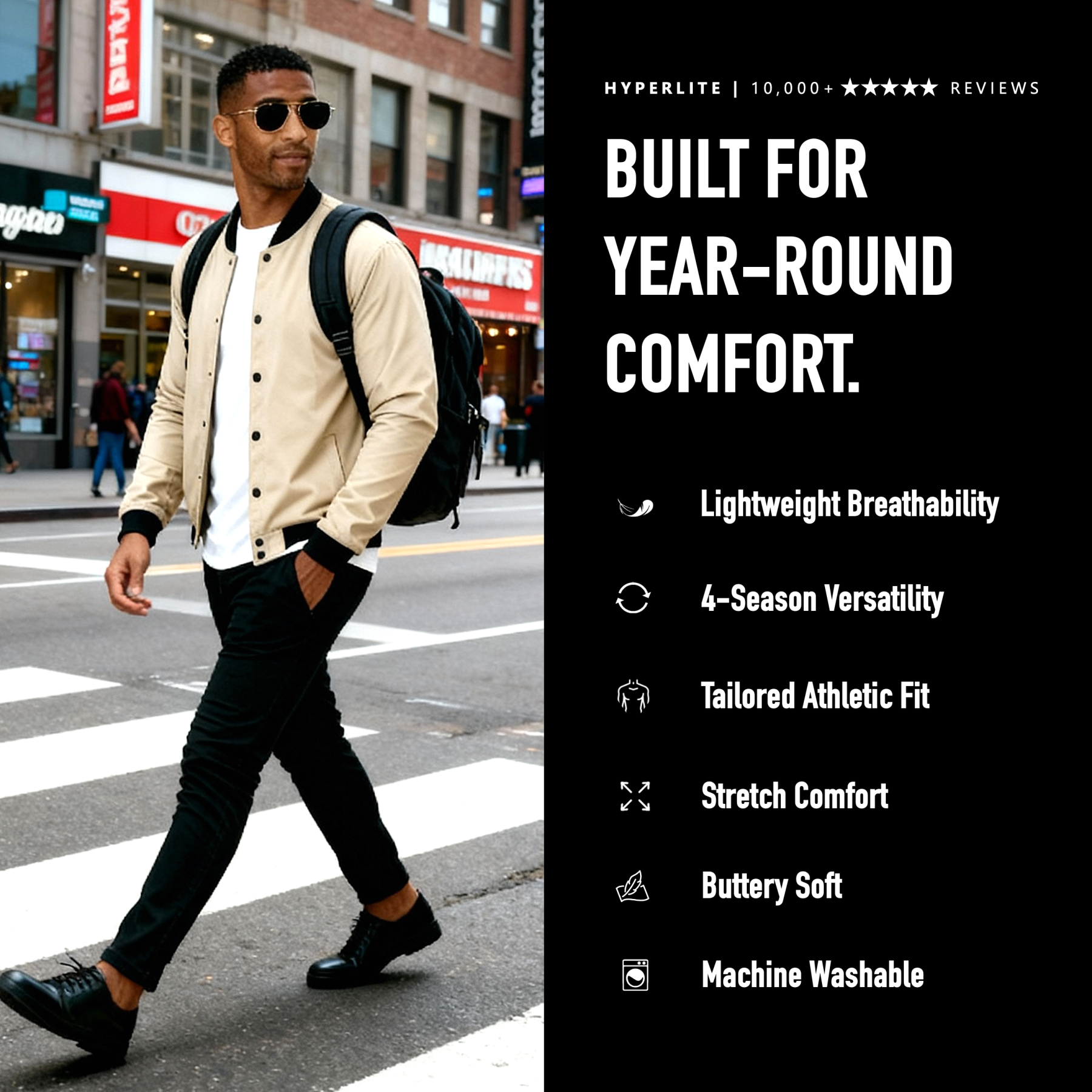 Our signature lightweight bombers feature our patented HYPERLITE fabric for maximum comfort and year-round versatility.