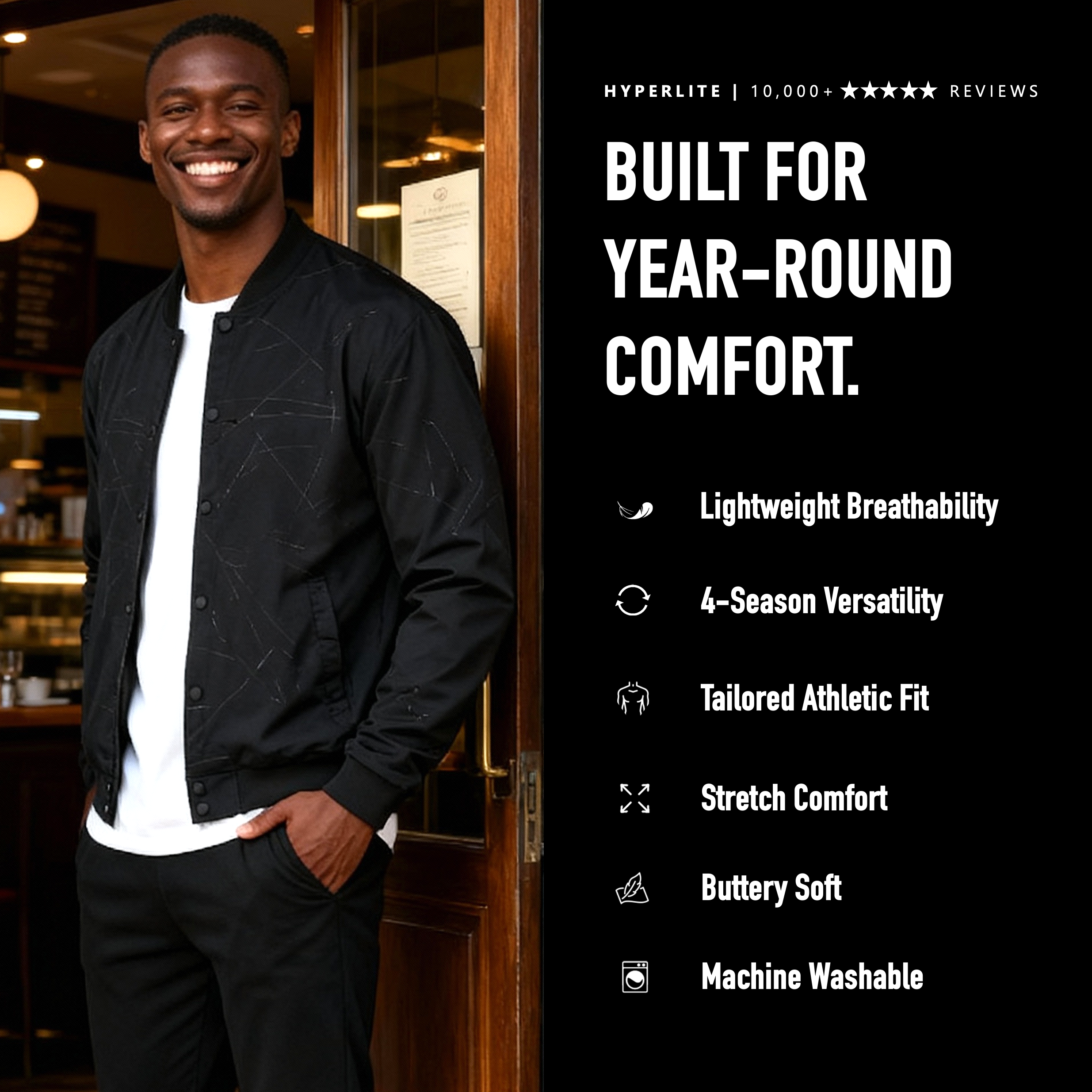 Thousands of 5-star reviews don't lie. Each Hyperlite bomber is built using the best lightweight materials on the planet. Buttery soft, high retention rib, our signature Soft-Touch matte black snaps, and a super-sueded lightweight fabric that fits great and feels even better.