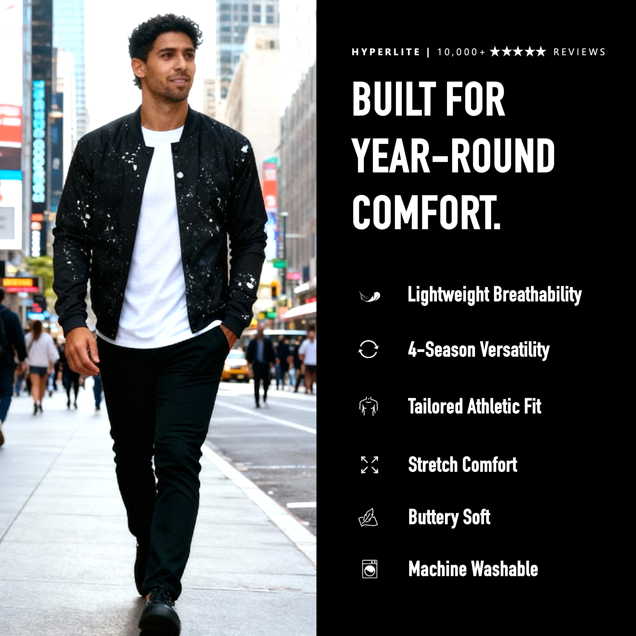 Our signature lightweight bombers feature our patented HYPERLITE fabric for maximum comfort and year-round versatility.