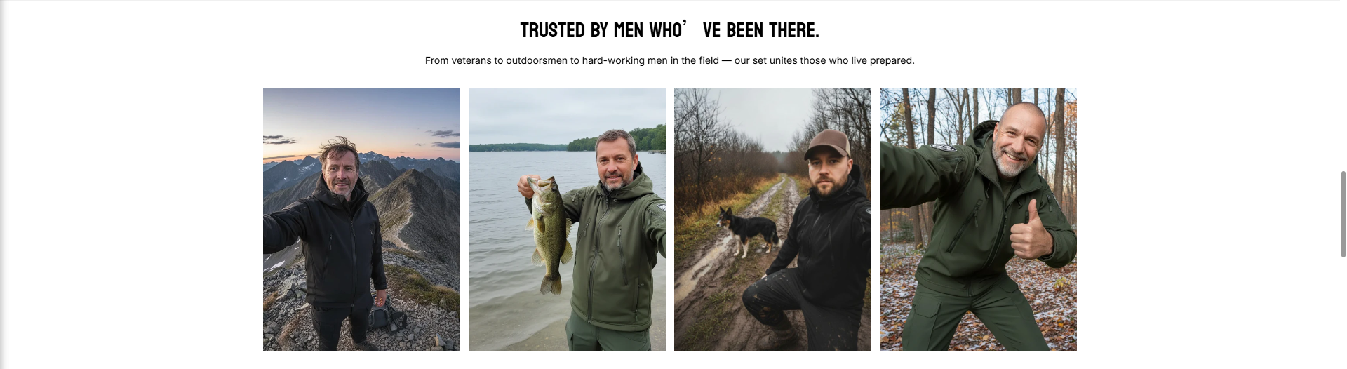Waterproof Softshell Jacket & Pants Set Green tactical jacket and pants set on a white background Tan tactical jacket and pants set on a white background Gray tactical jacket and pants set on a white background Man fishing in a forest stream with text 'Perfect for every trip, hike, or hunt'. Black jacket and pants bundle with features highlighted on a gray background Collage of black jacket details including zipper, fabric texture, and water droplets. Person in green hiking gear with backpack on a snowy mountain, emphasizing waterproof protection. Comparison of Lazarel outerwear and regular outerwear with a man wearing each on a gray background. Man in a brown work suit standing in rain with text about ruggedness and reliability. Man in green jacket outdoors with review text overlay