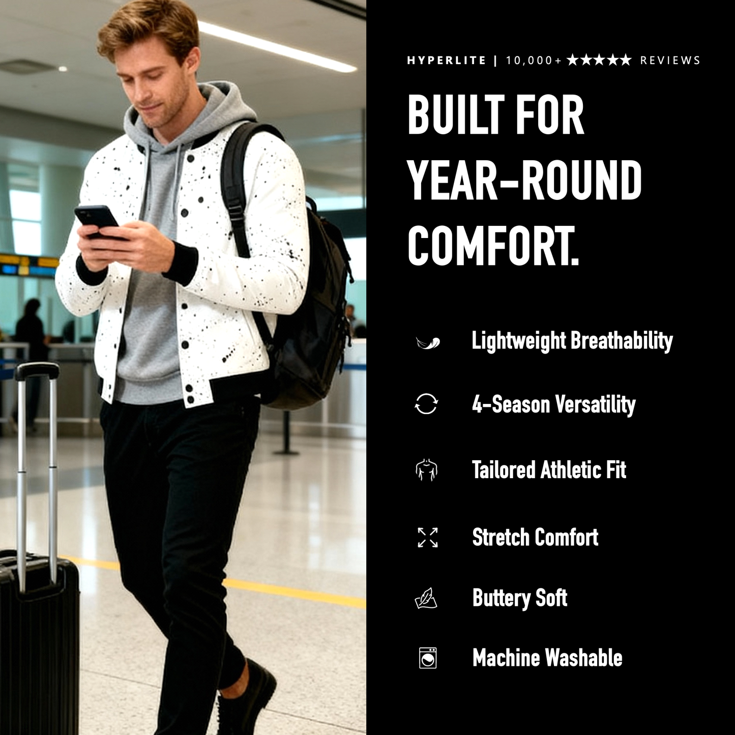 Our signature lightweight bombers feature our patented HYPERLITE fabric for maximum comfort and year-round versatility.